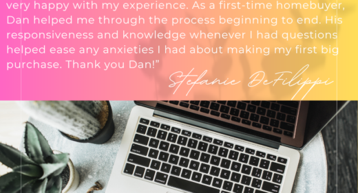 “It was a pleasure working with Dan for the purchase of our first home. He was quick at responding to all of our questions, and he provided great guidance through the home buying process. When visiting homes, he helped us narrow down our search criteria by pointing out things to consider that we would not have otherwise thought of. He is very knowledgeable and invested so much time into helping us gather all the information we needed to make a decision on a home. We highly recommend Dan!”